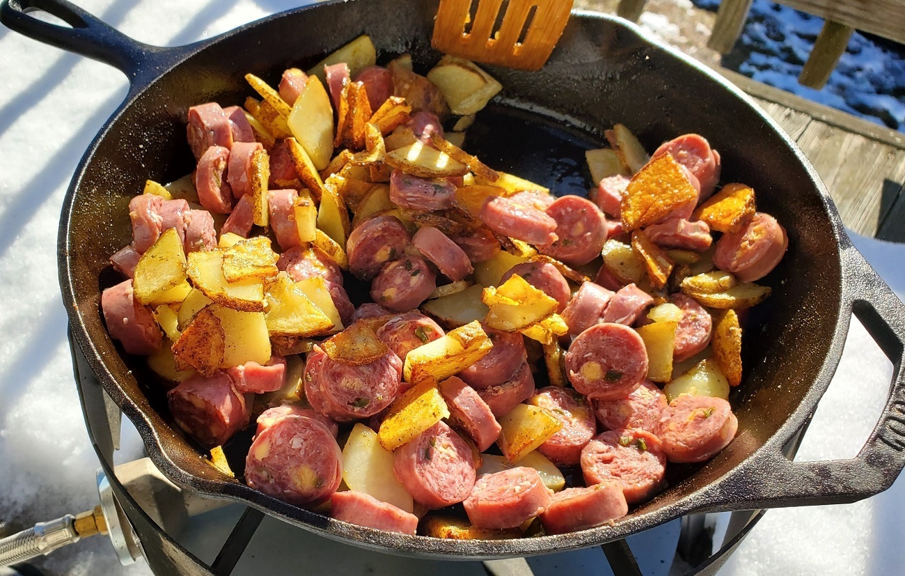 Lights-Out Venison Kielbasa, Potatoes, and Sauerkraut Recipe